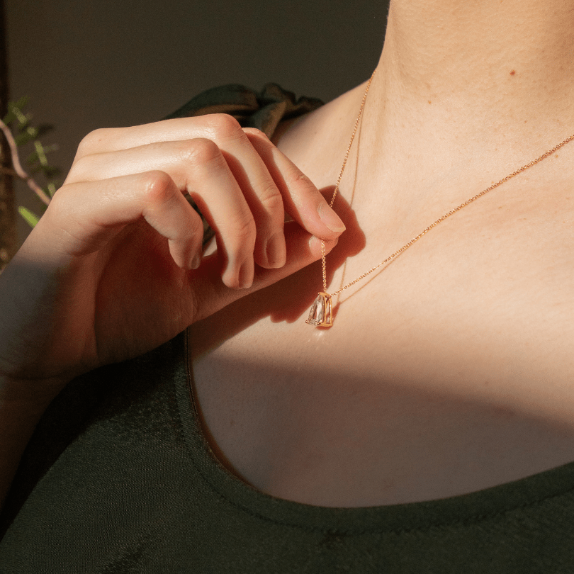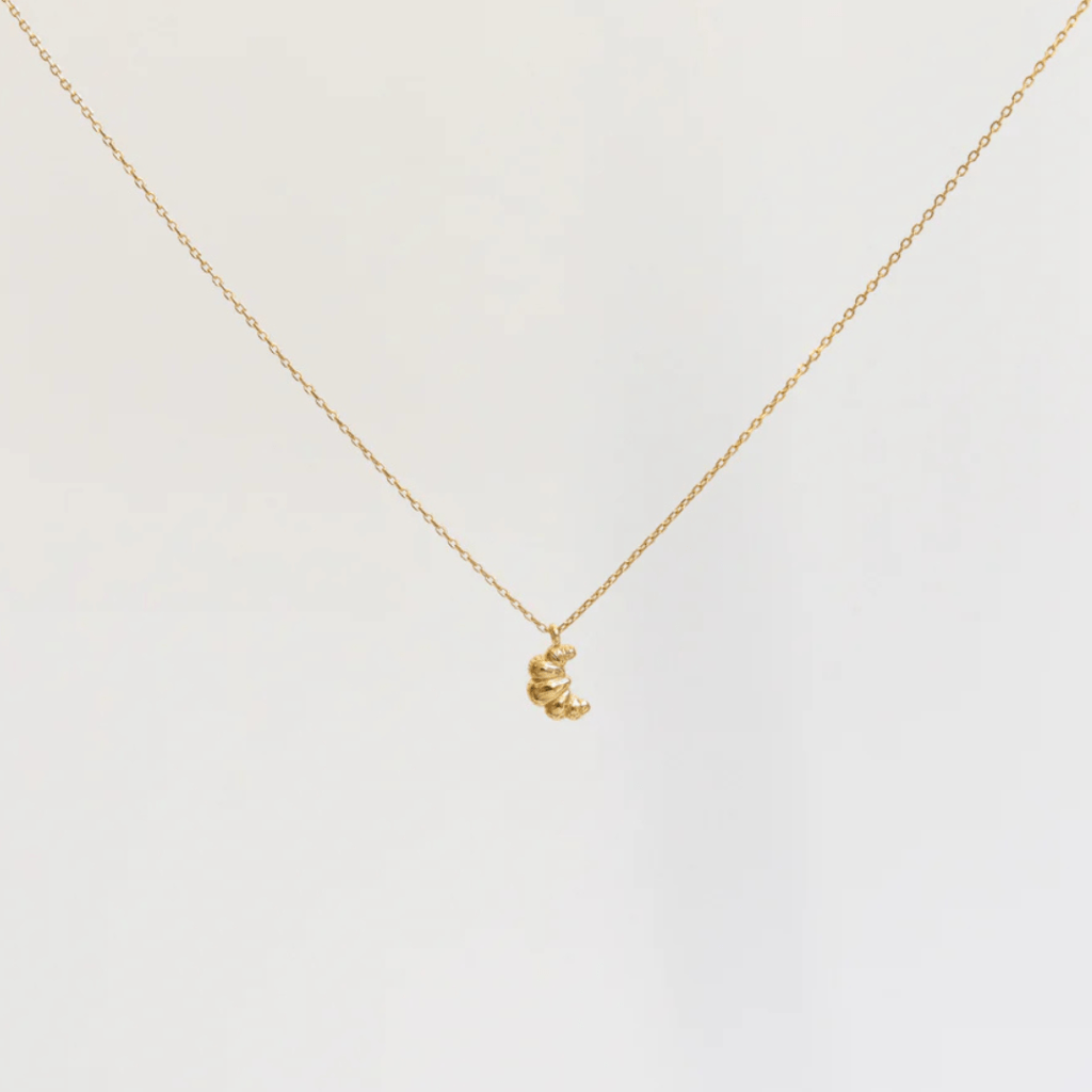 The Croissant Necklace is all the golden fluffy goodness you could ask for, strung on a delicate chain.