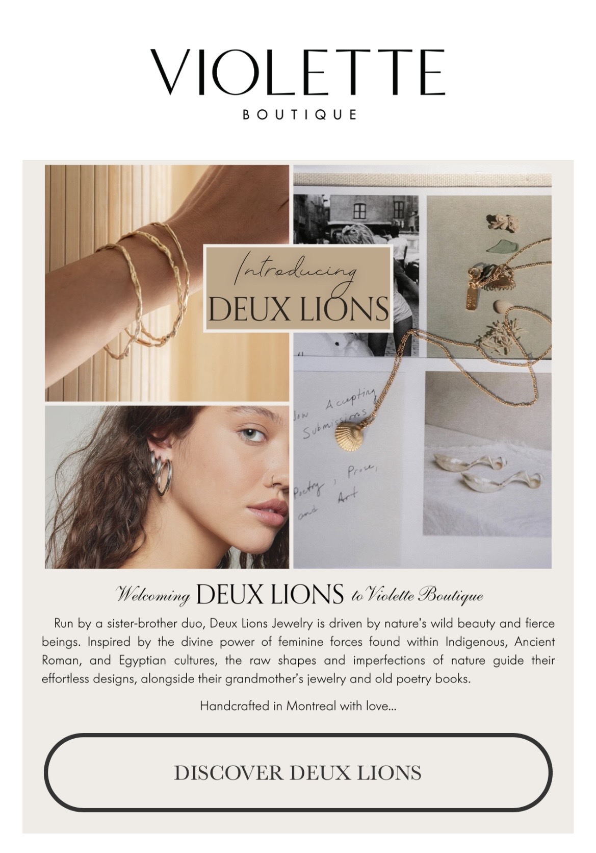 - Goal: Introduce new jewelry brand, Deux Lions, to customers