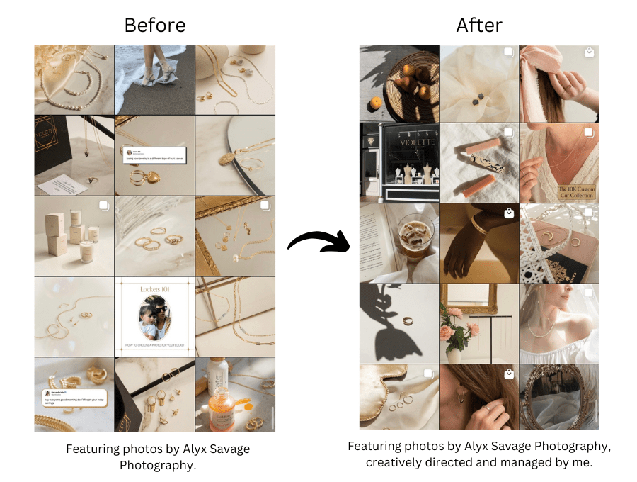 The photos below are direct screenshots from Violette Boutique’s Instagram page before and after I started working with them during my full-time role.